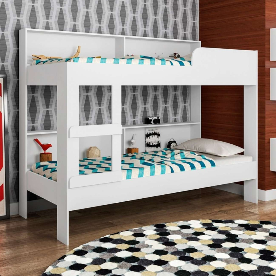Cuenta con 2 estanterías en cada cama y escalera.